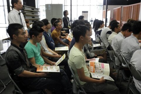 説明会後は各学校のブースに分かれて、個別に質問している学生もいました。