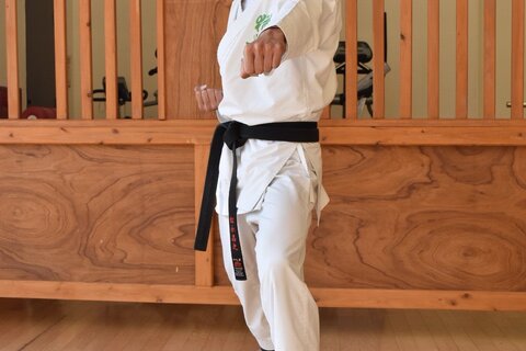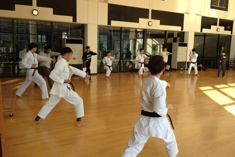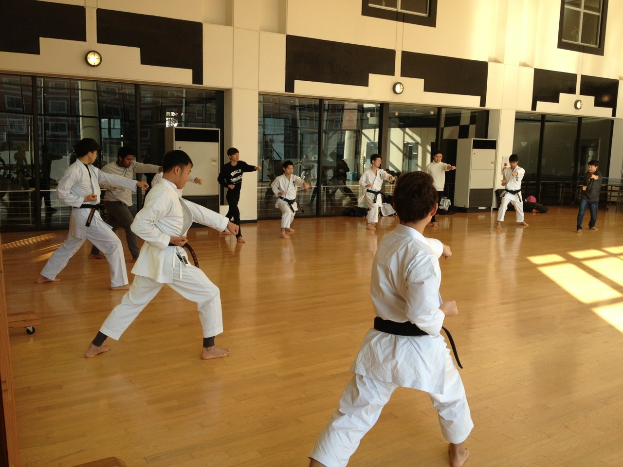 空手の先生は、長崎国際大学の空手道部の学生さんに教えていただきました。