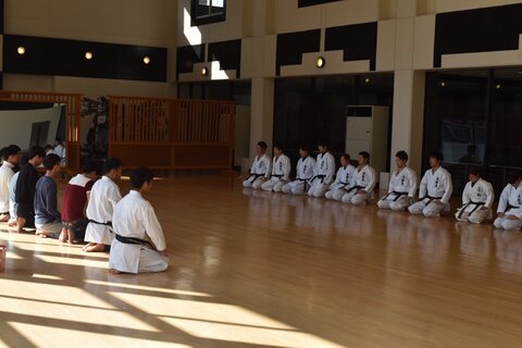 空手は黙とうから始まります。みなさんしっかり正座をしていました。