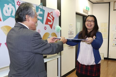 卒業生は台湾人の学生1名だけでしたが、日本語能力試験N2を取得した学生で、