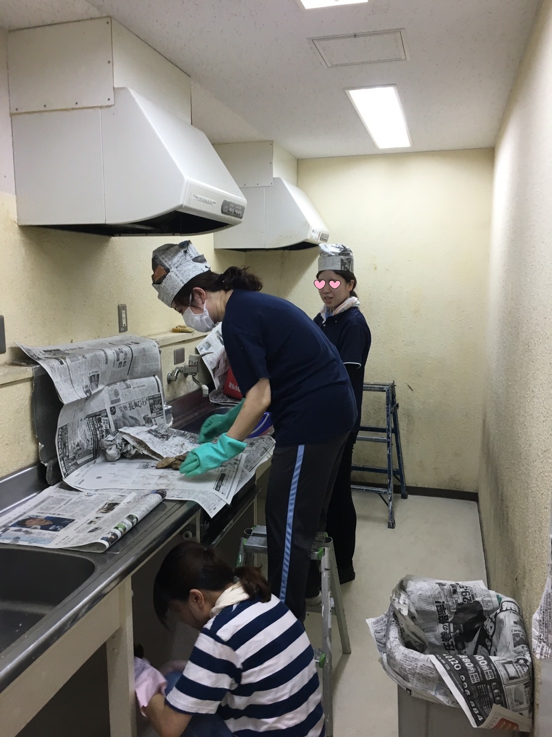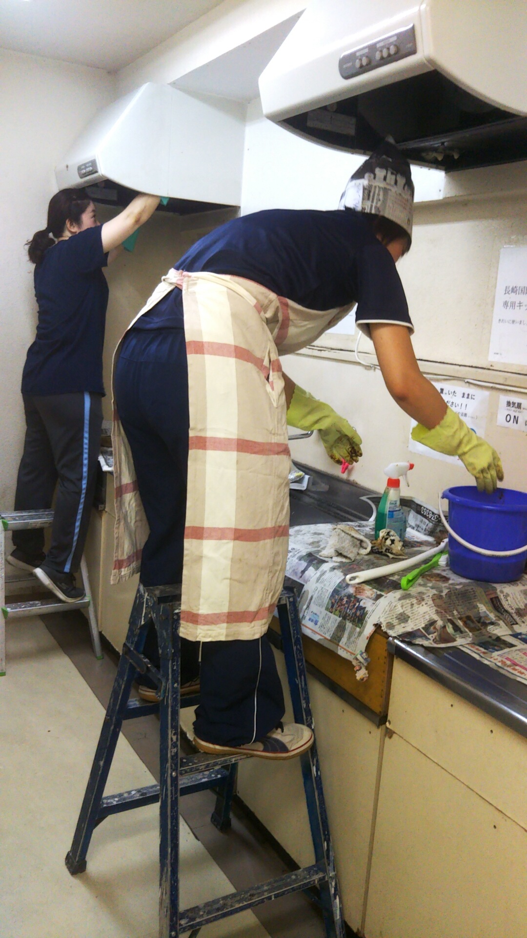 学校の職員で学生寮のキッチンを掃除しました。