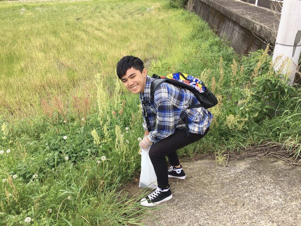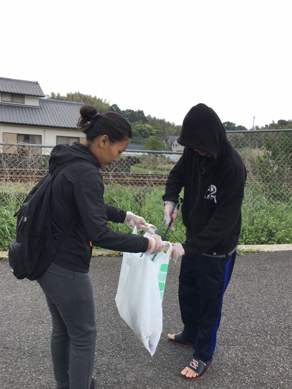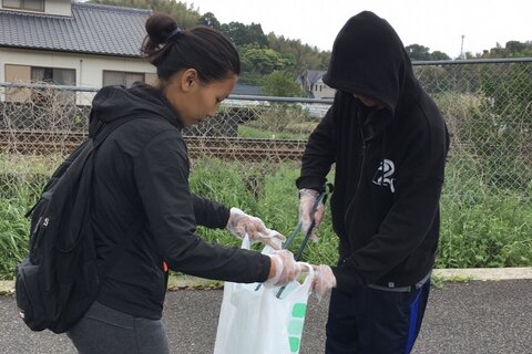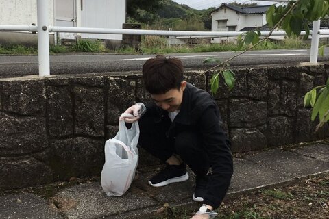 いろんなところにいろんなゴミが落ちていて、頑張って拾っていました。