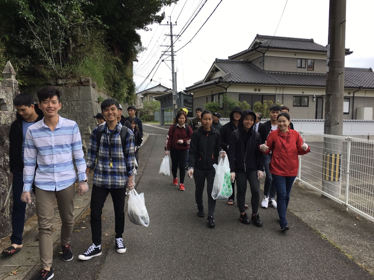 Aクラスの学生で学校の近くにある公園の清掃に行きました。