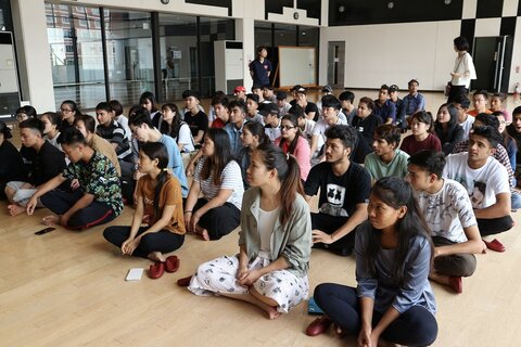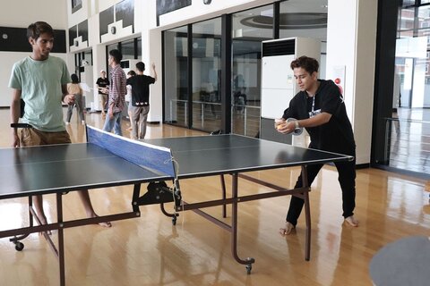 スポーツをしたい学生は、体育館でバドミントンや卓球やなわとびをしたり、