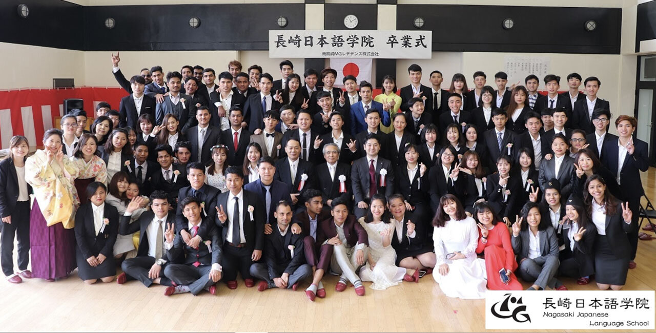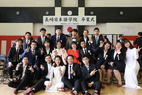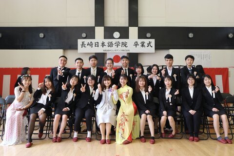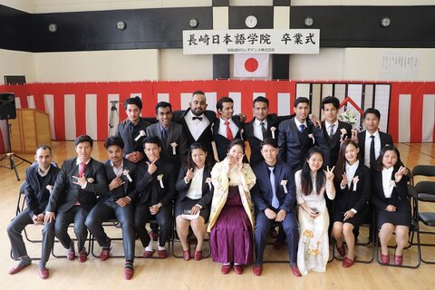 卒業生のみなさん、この長崎日本語学院で学んだことや思い出を大切に、次の学校でもがんばってください!