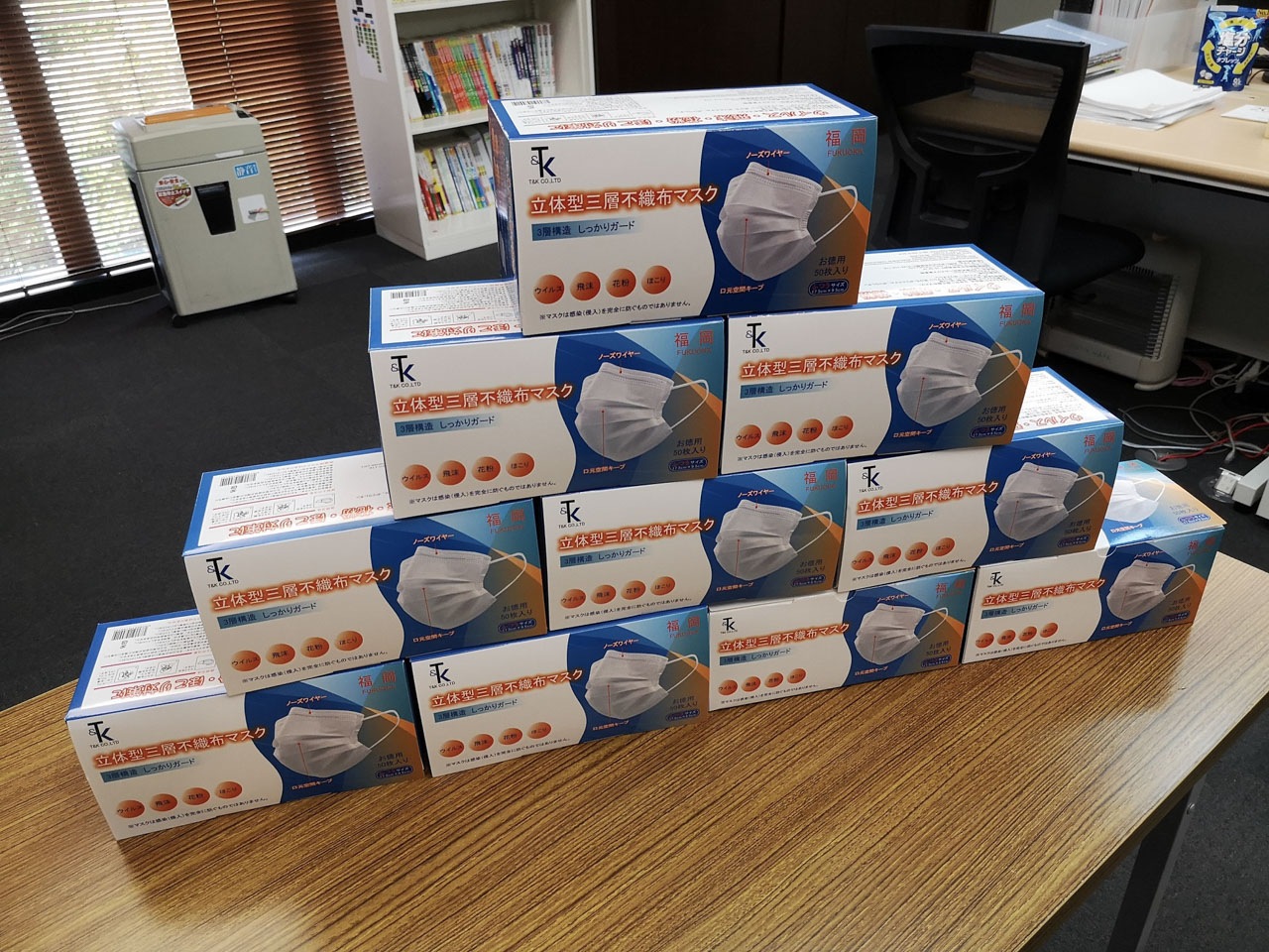 本校の校長、副校長の教え子であり、現在はT&K株式会社の社長を務めていらっしゃる華思林(カン シリン)さんがマスク500枚を寄贈してくださいました😭