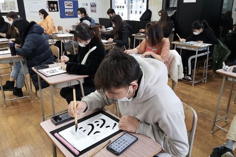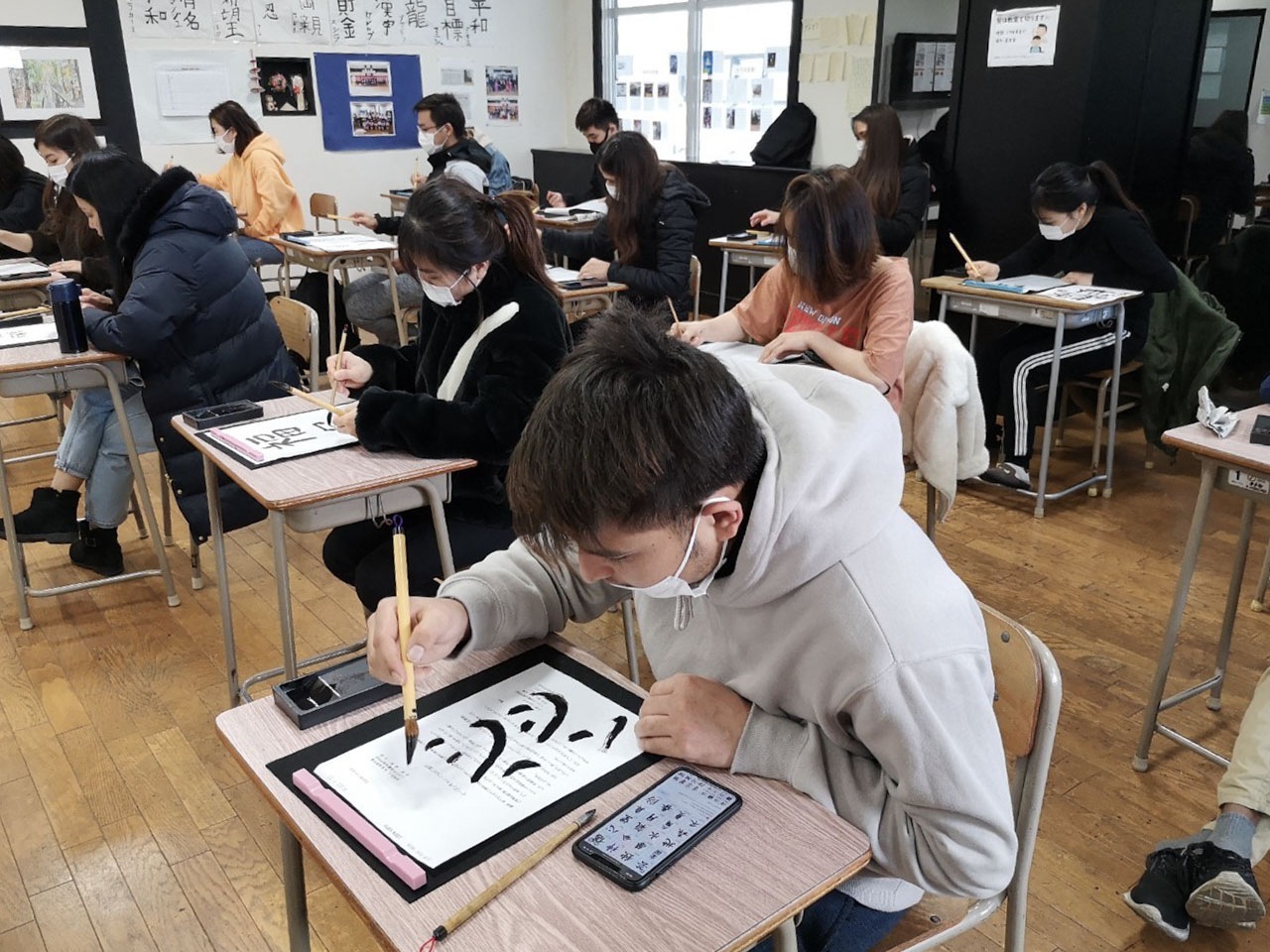 芸術的な絵を描く学生もいて、個性豊かな書き初めになりました😆