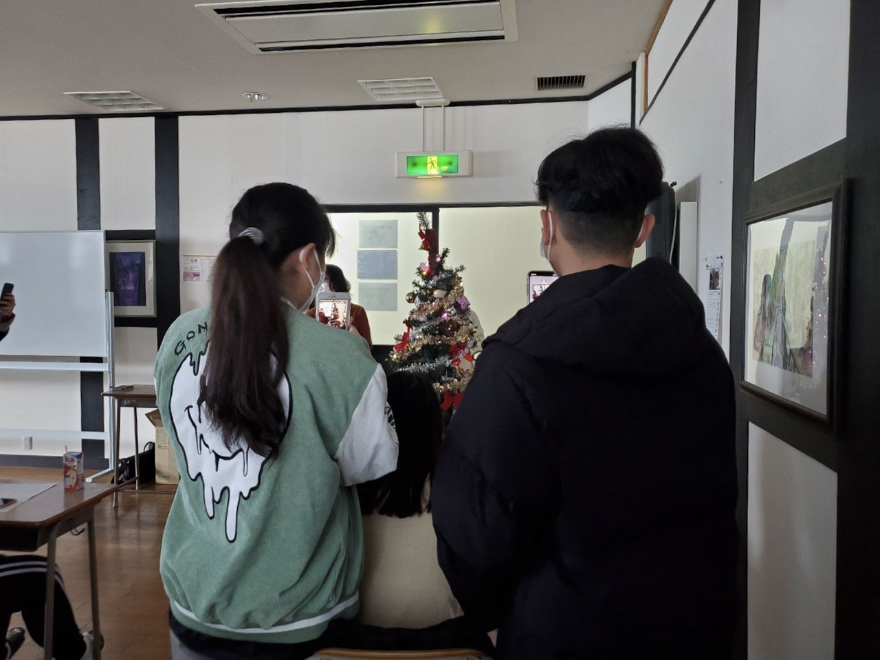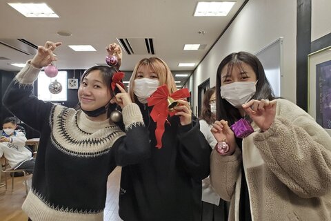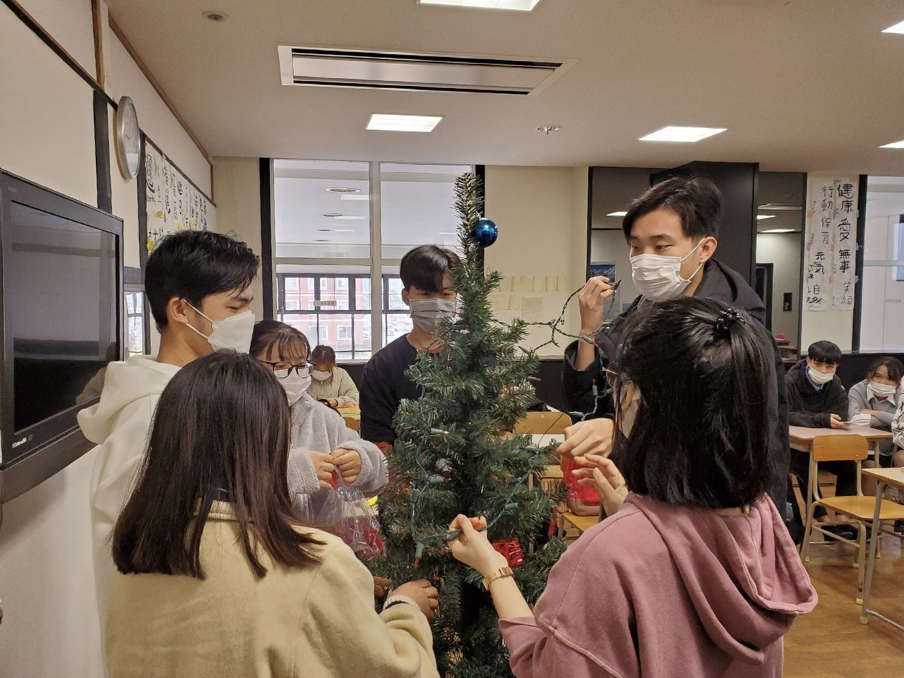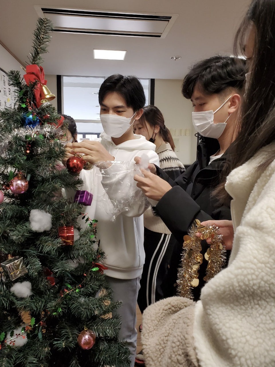 学院生たちがクリスマスツリー🎄に飾りつけをしました。