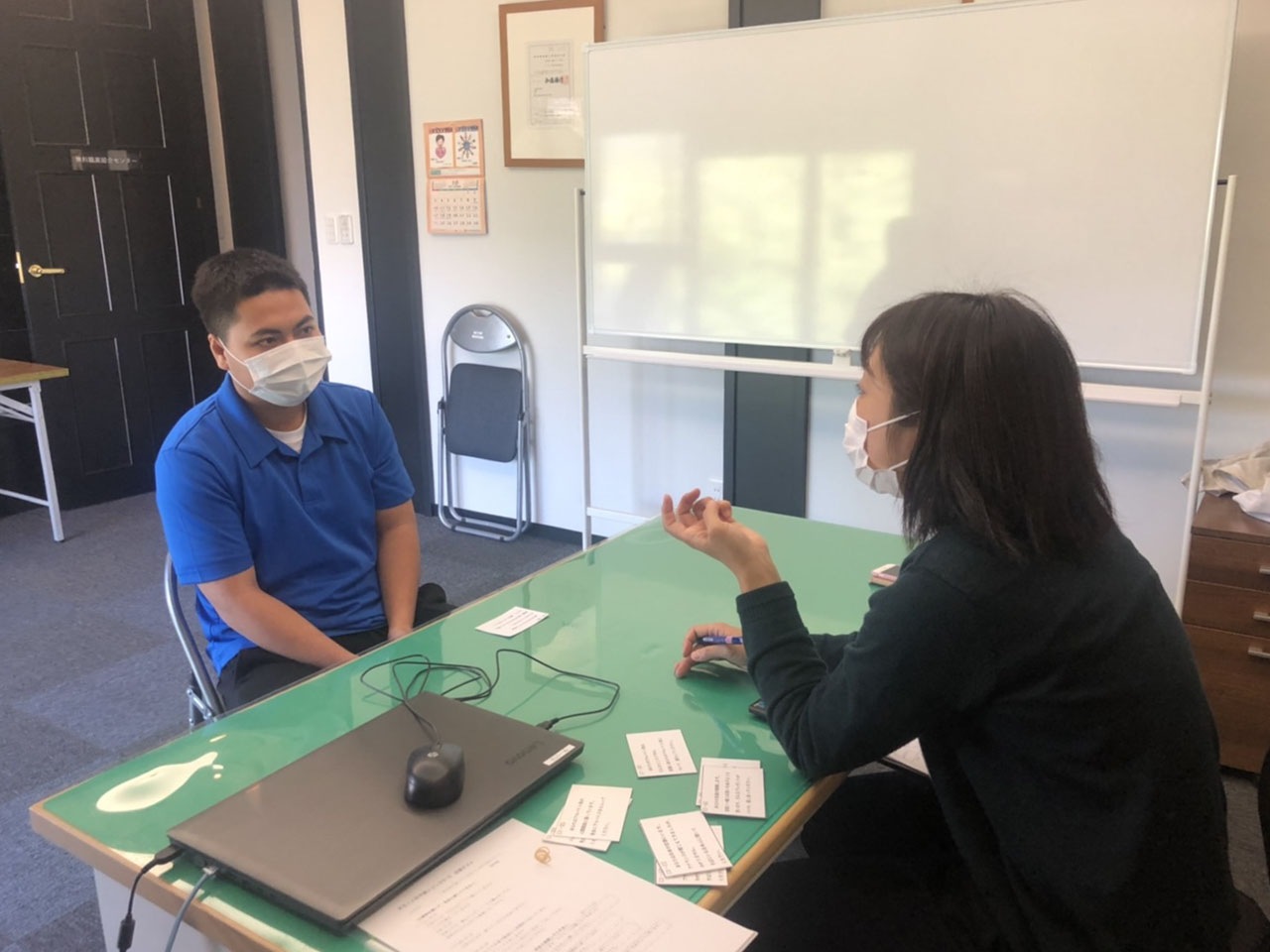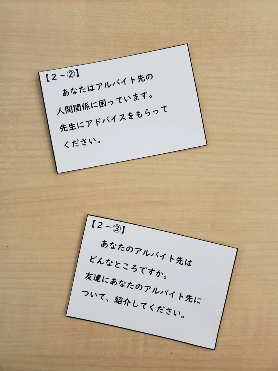 今回はロールプレイを中心に行い、『友達にアルバイト先について紹介する』、『アルバイト先の人間関係に困っているのでアドバイスをもらう』など様々なテーマでやり取りをしました。
