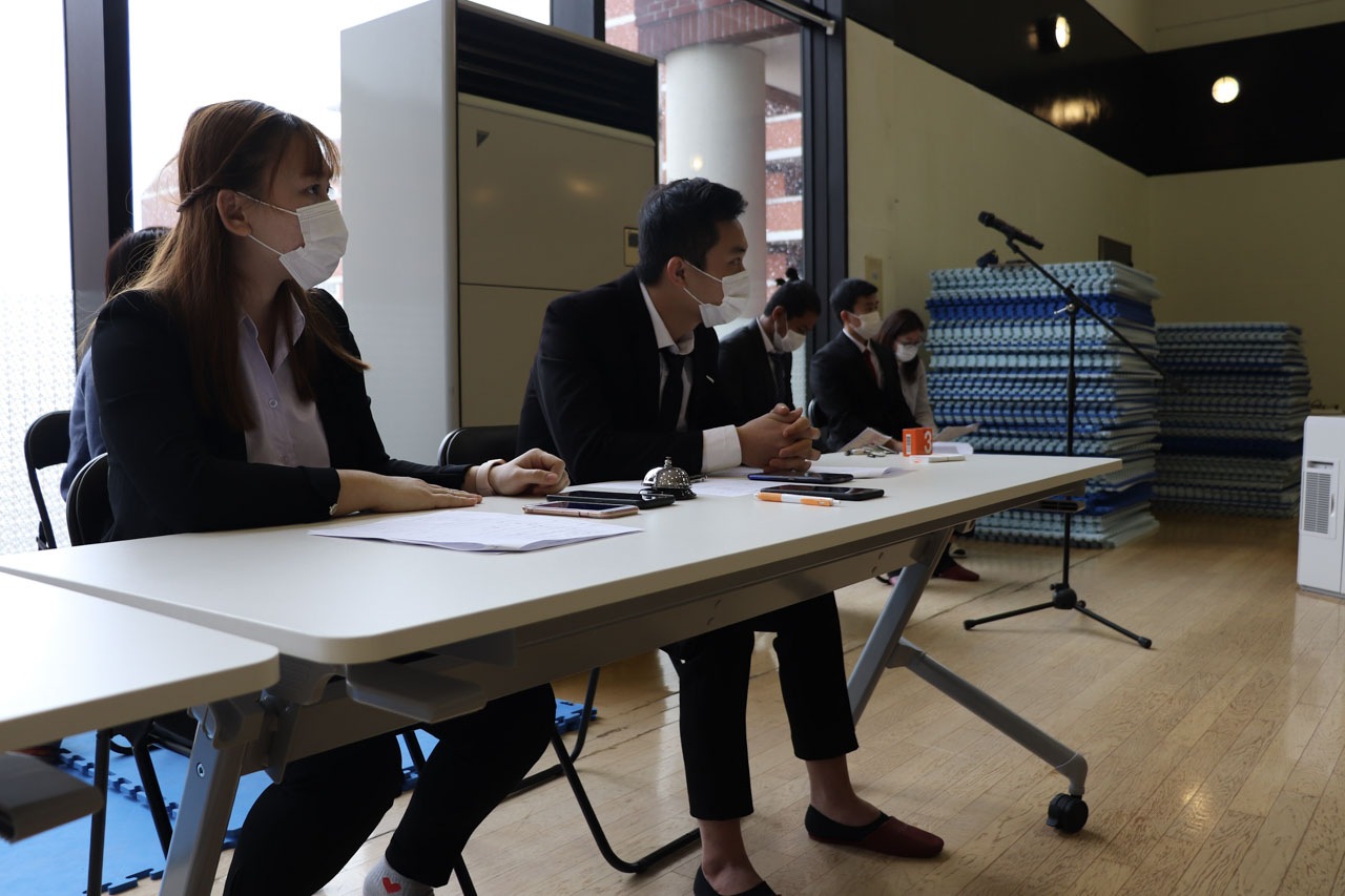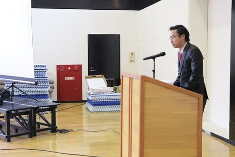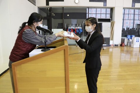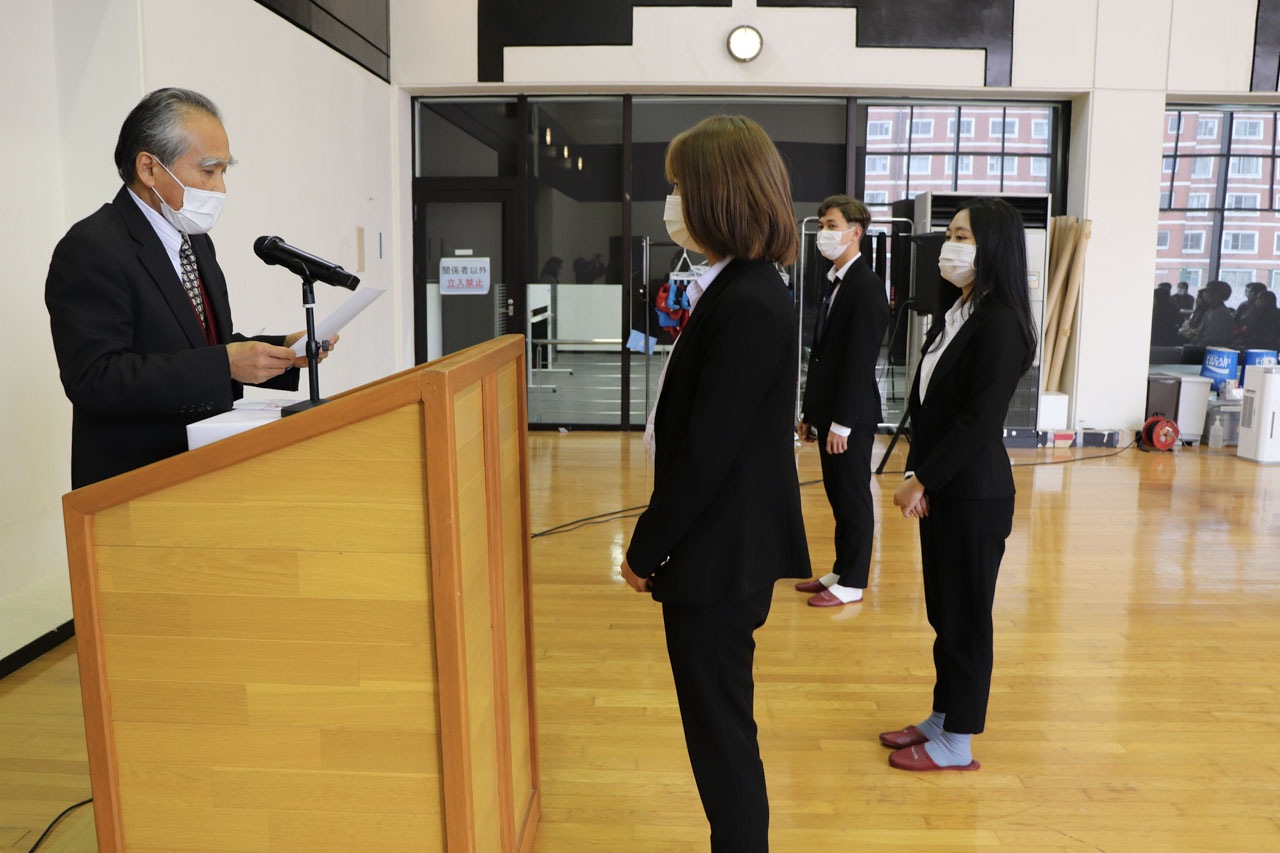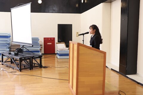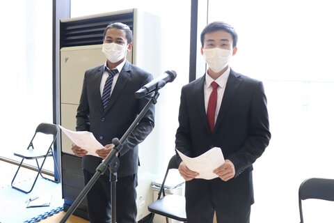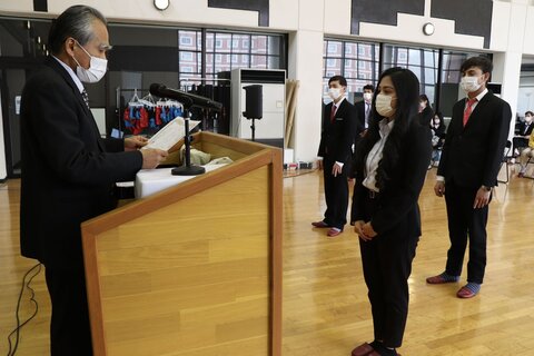 新入生は暗唱した物語を、先輩学生は自分で考えたスピーチを発表しました。