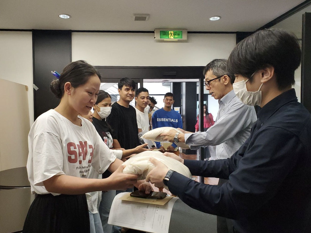 JASSO(日本学生支援機構)の「物価高に対する経済対策支援金」を受け、本日は、お米をプレゼントできました。