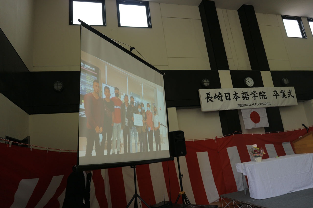 式の最後には卒業生へのプレゼント、スライドショーを上映しました。