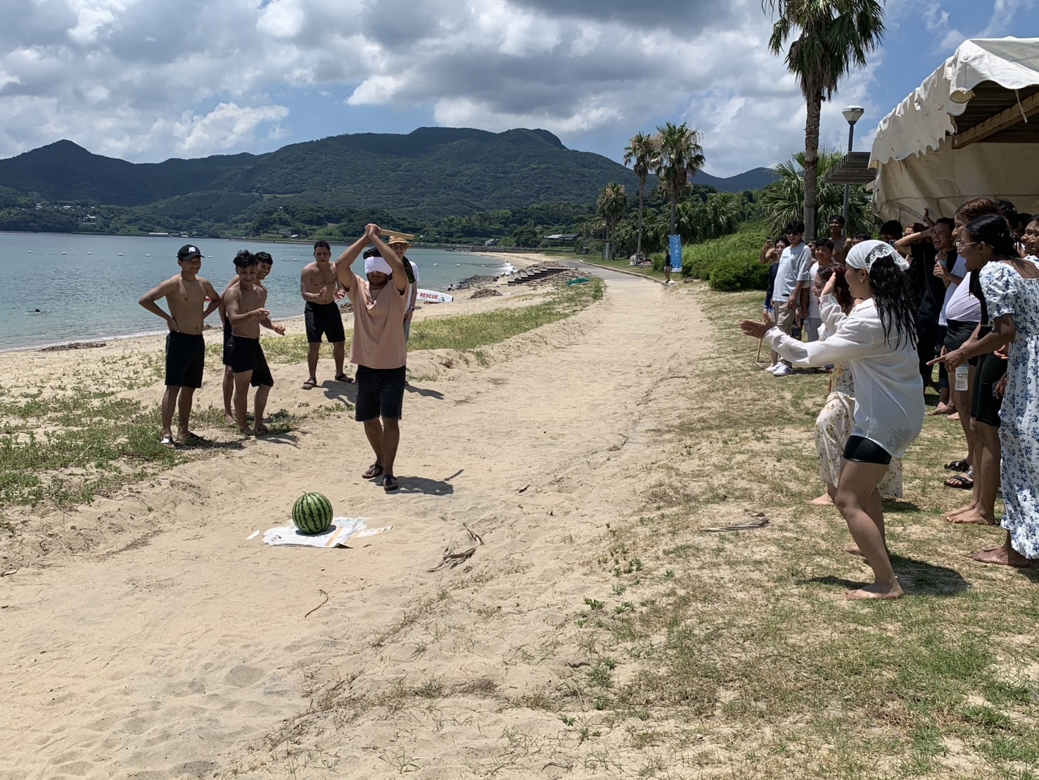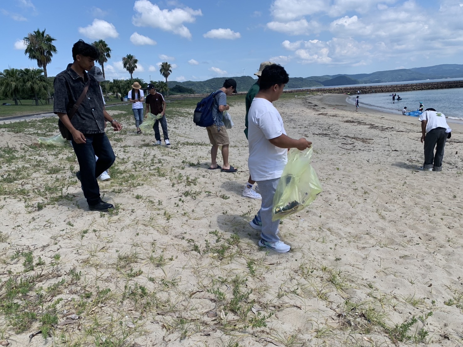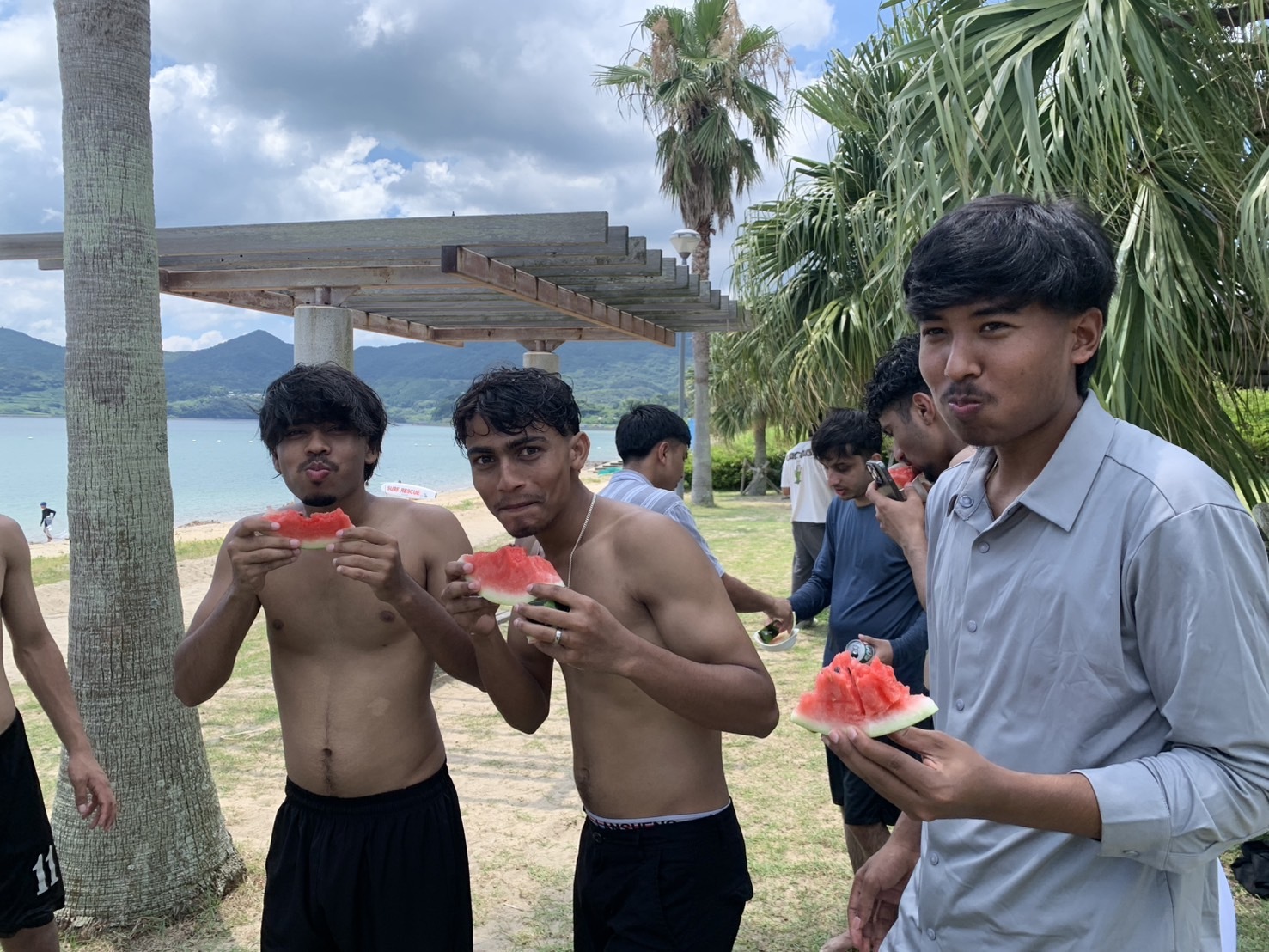 海がないネパールから来た学生たちは、初めての「しょっぱい海」に大興奮でした。泳いだり、スイカ割りで思いっきり楽しんだ後は全員でビーチ清掃も。