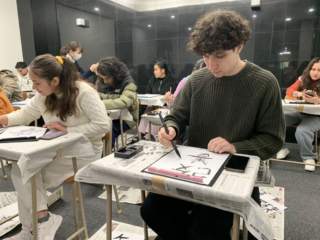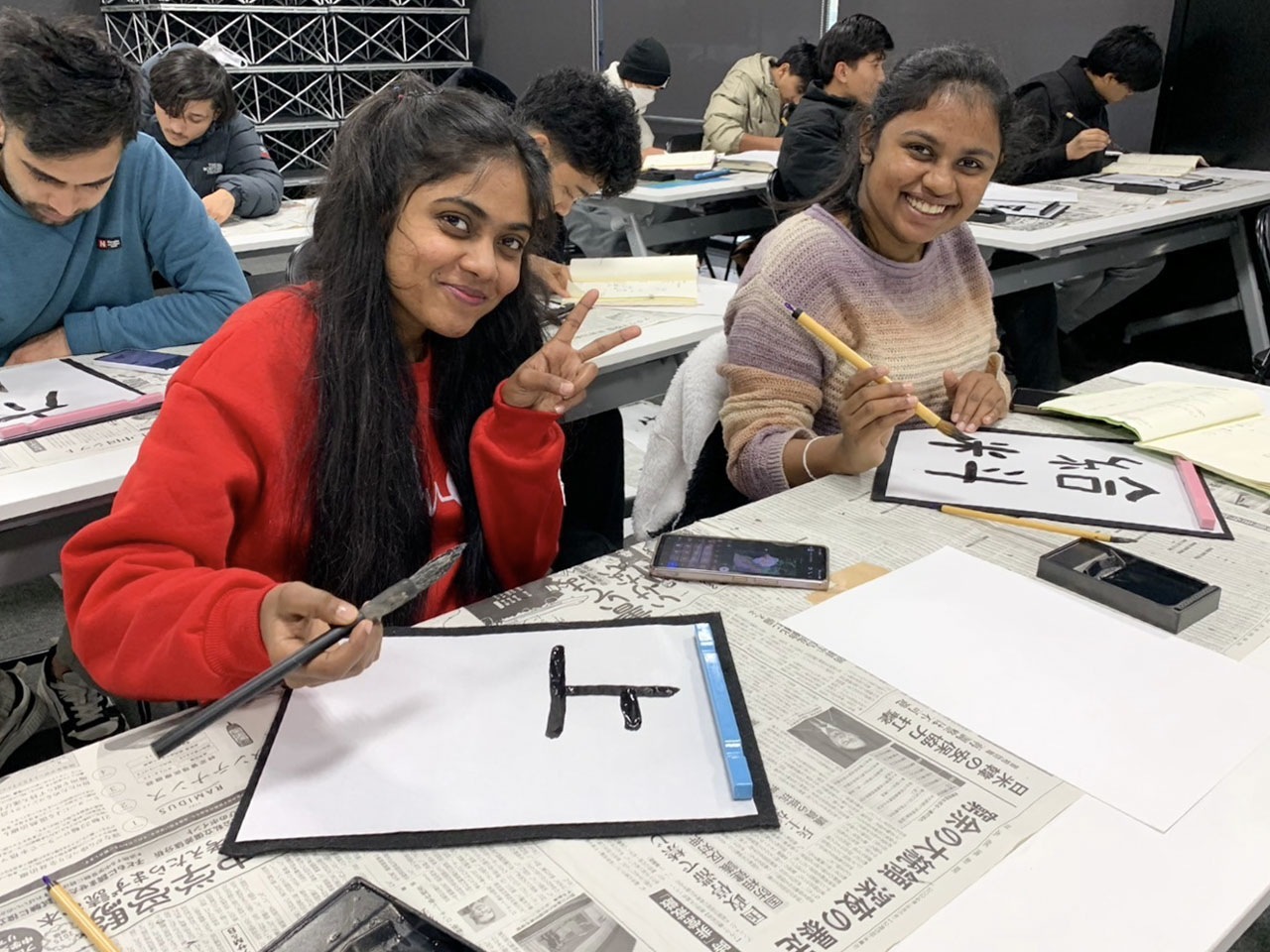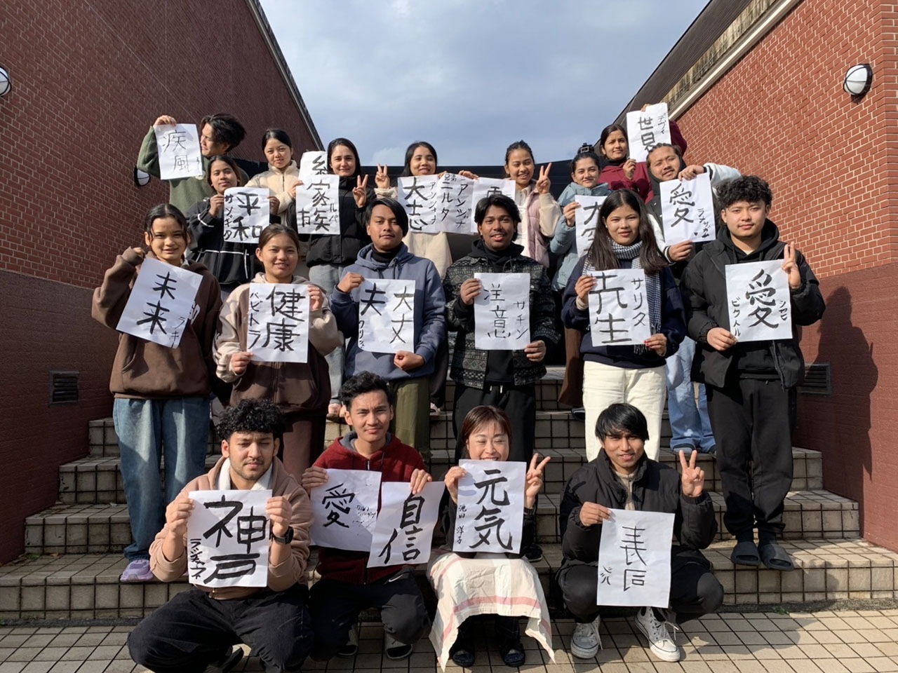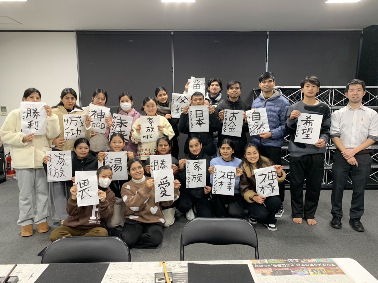 その後、各教室に移動し、新年最初のイベント「書初め」を行いました。新年の抱負、大切な人、好きな漢字など各々、好きな言葉を自由に書きました!