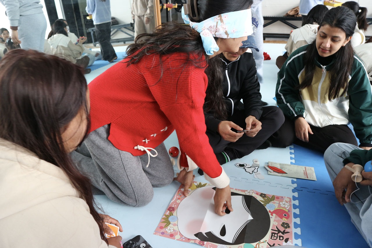 室内にて「空手体験」「昔遊び体験」「生け花体験」を、グラウンドにて「竹馬体験」「連凧体験」をしました。