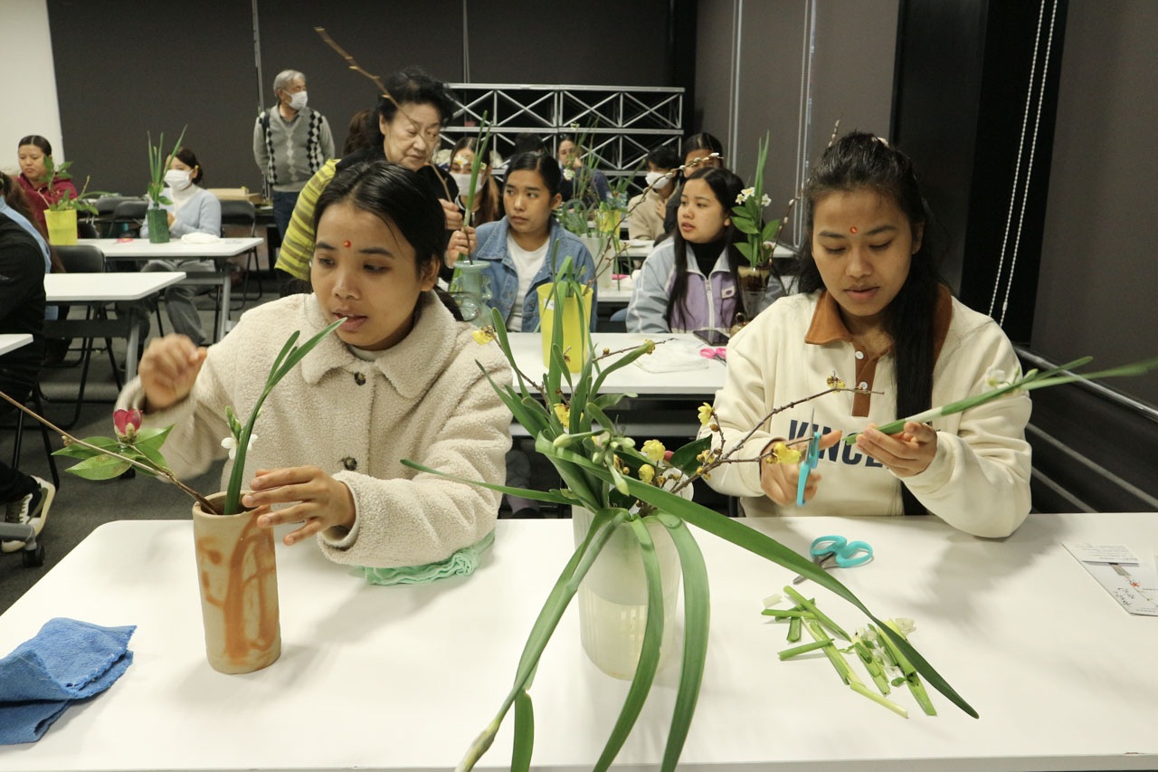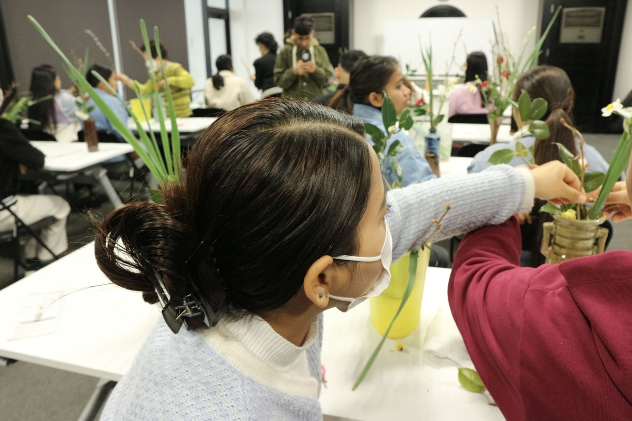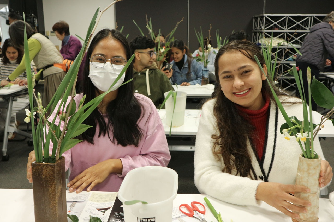 『生け花体験』先生方に教えていただき、素敵な作品ができました。